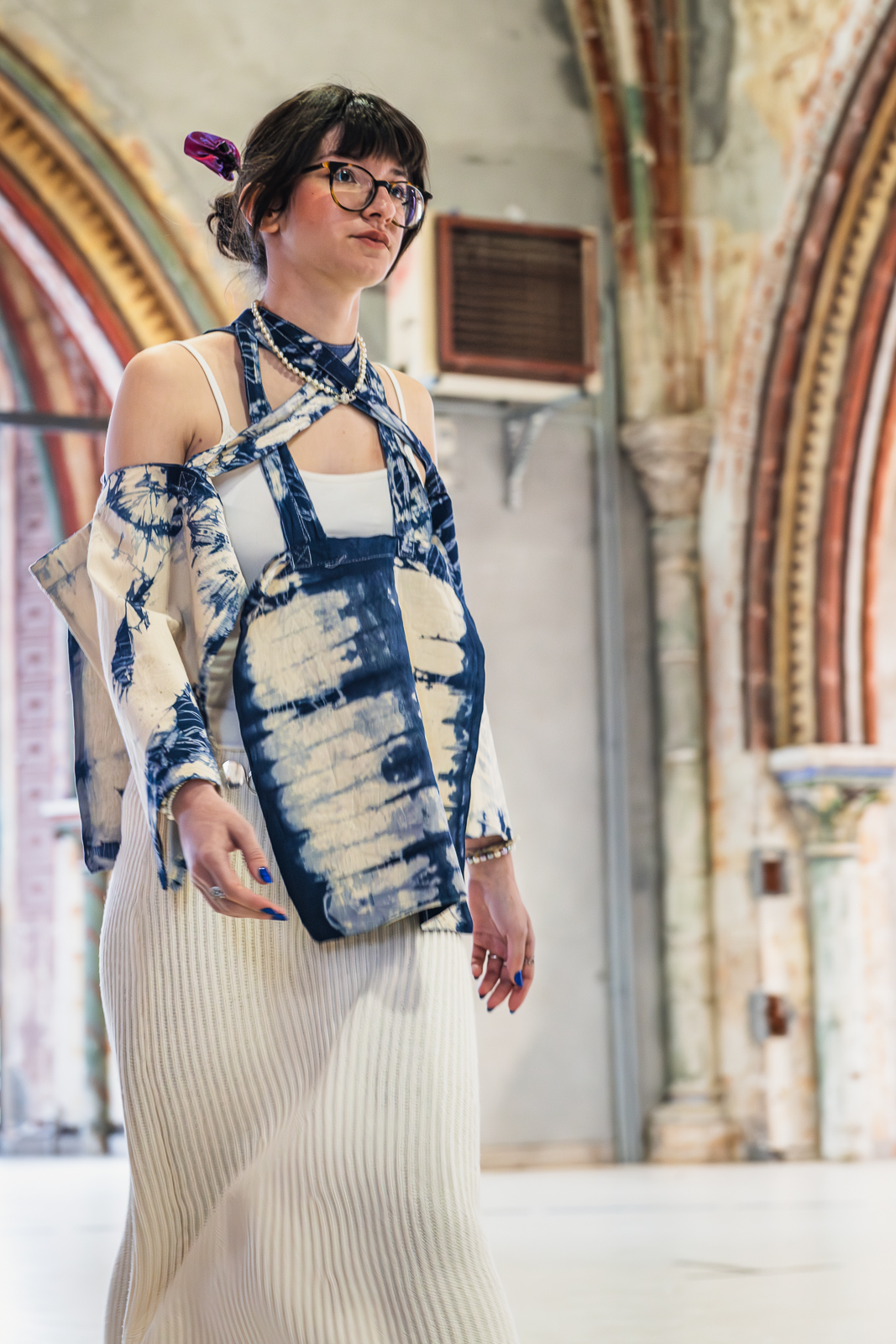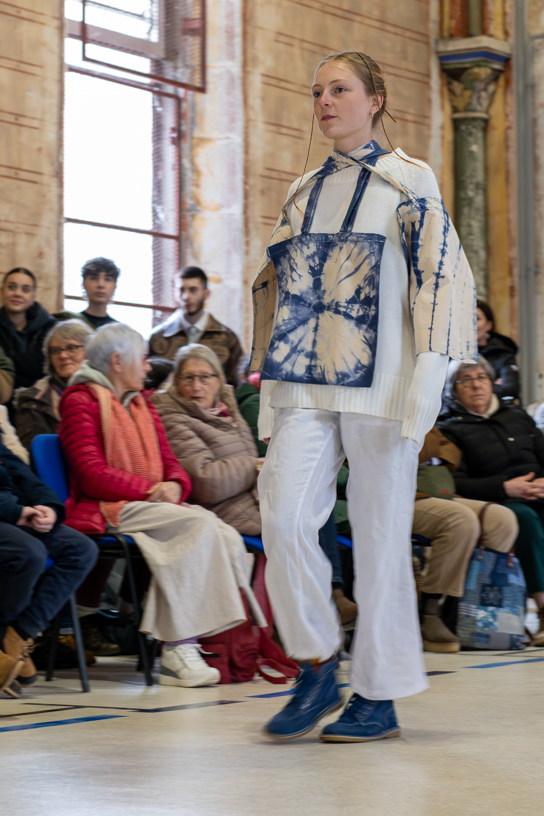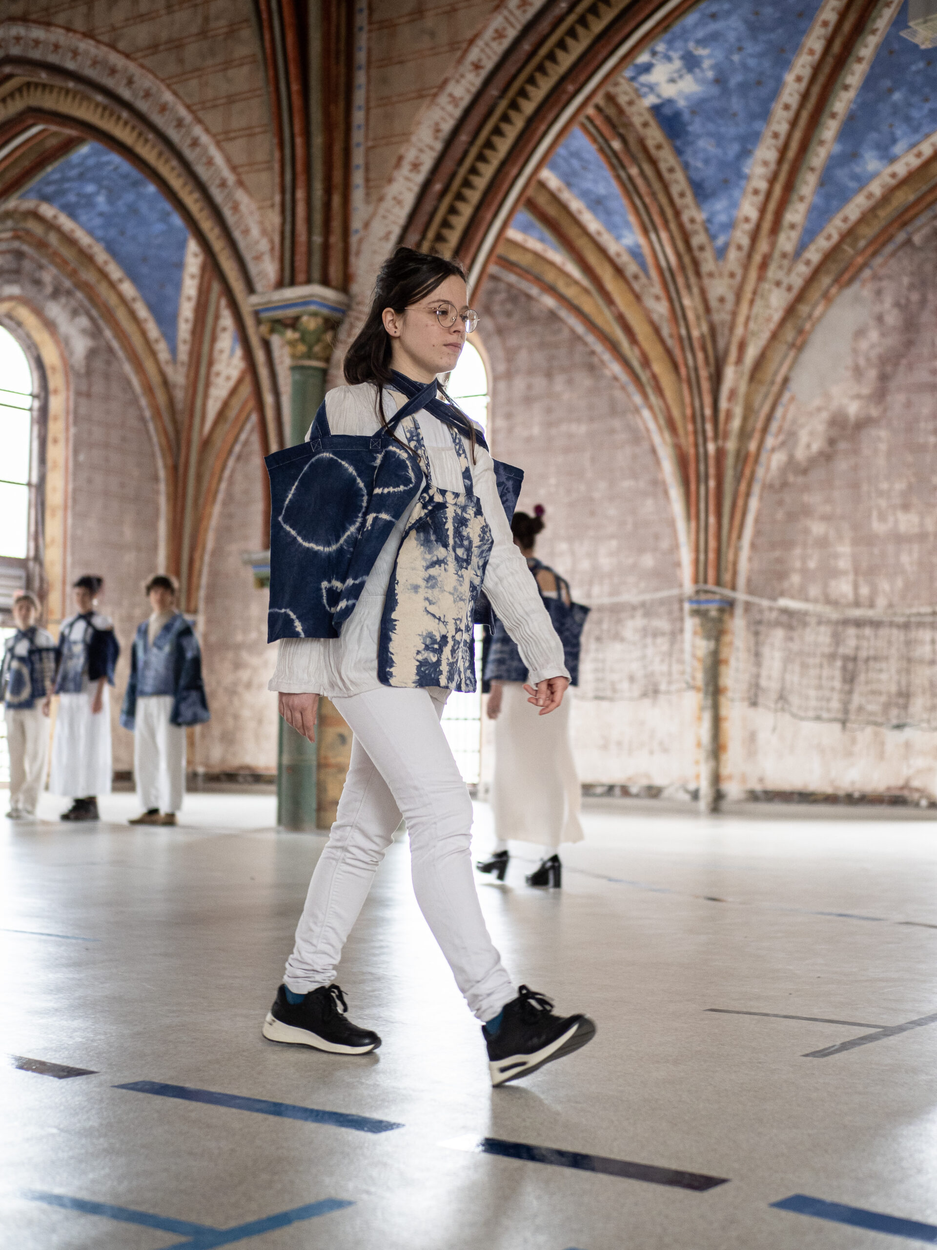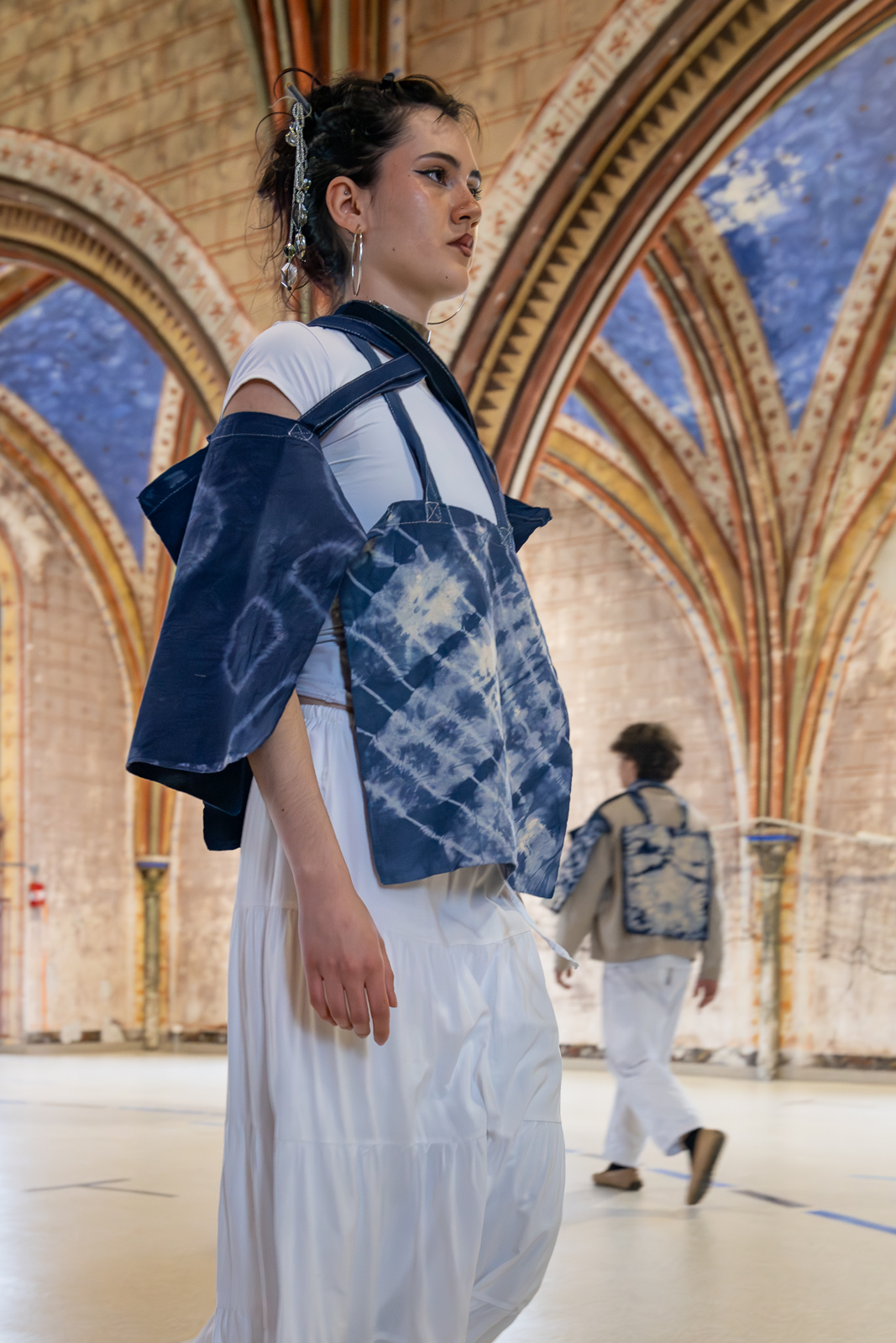 - 2ᵉ partie : Tote Bag Attack ! Défilé décalé mettant en scène des totes bags teints en Shibori.