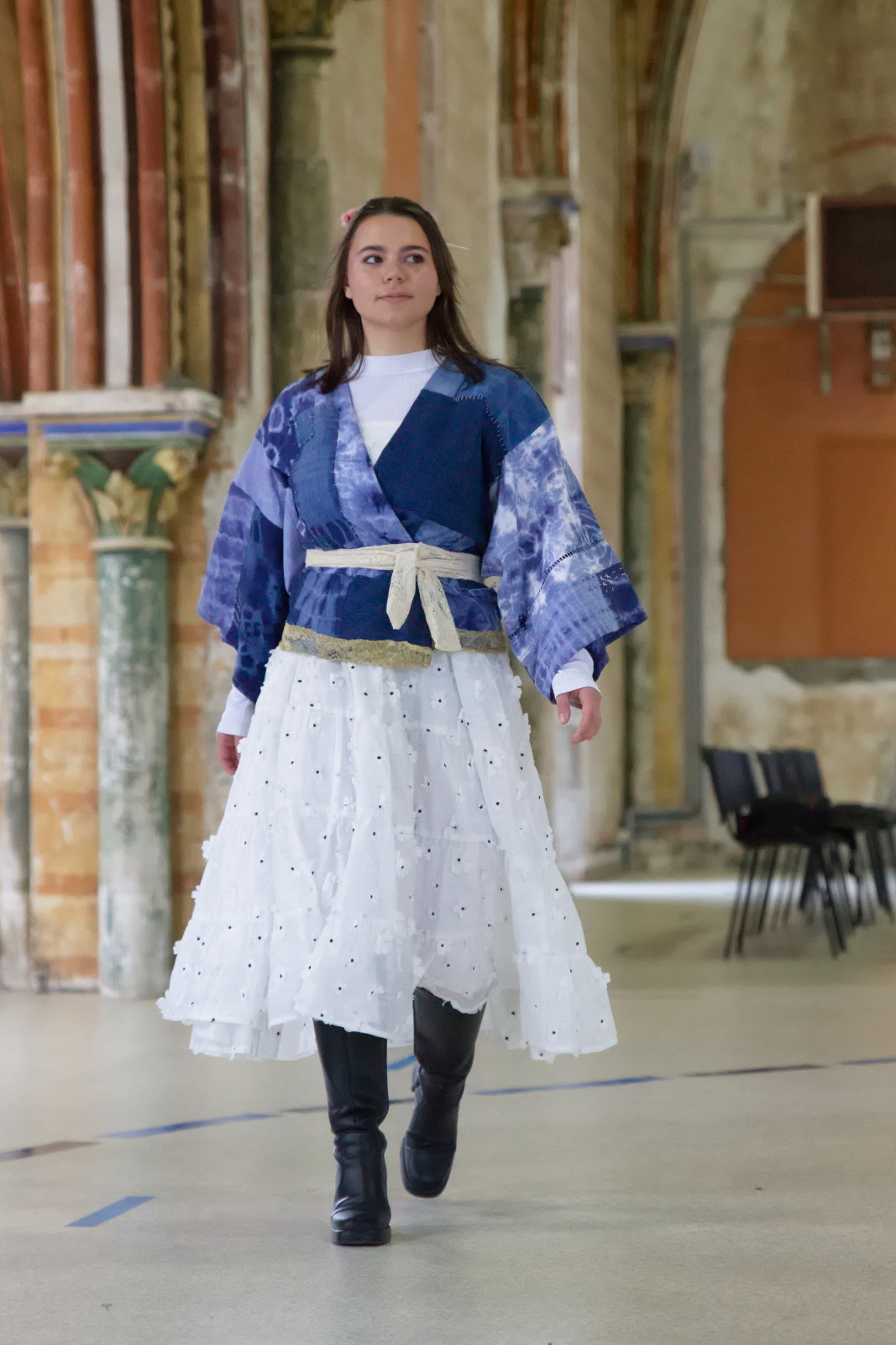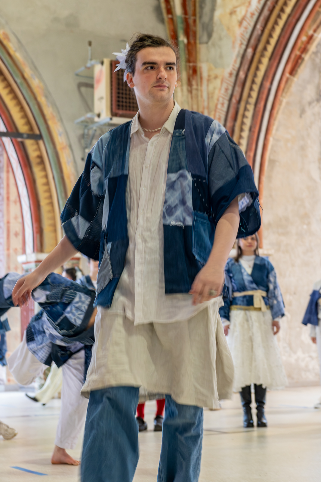 - 1ʳᵉ partie : défilé de vestes kimono en Boro, créées par les étudiants de Saint Géraud et du lycée Marie Laurencin de Riom.