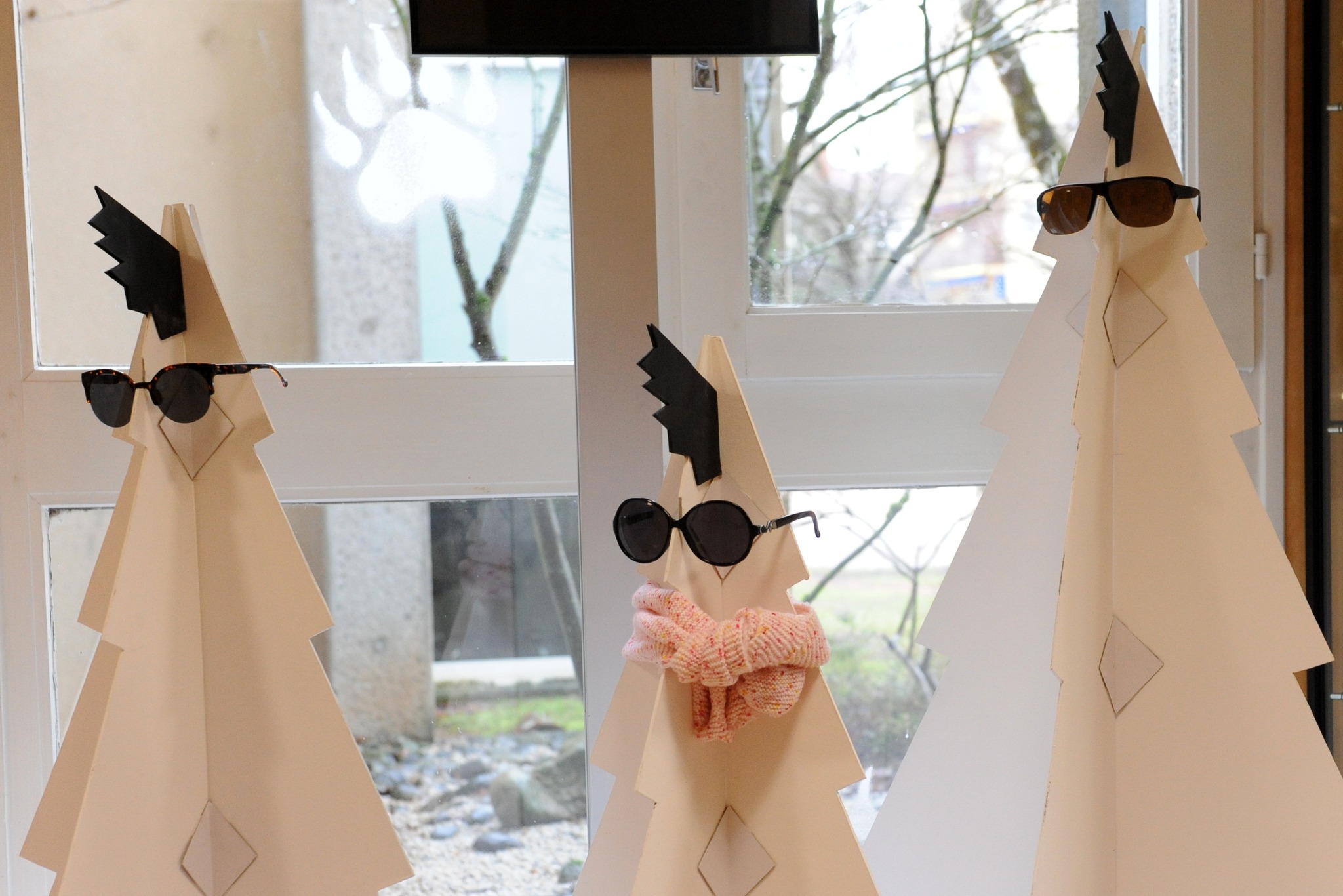 - des pattes d’ours pochées à la bombe à neige sur les baies vitrées ;