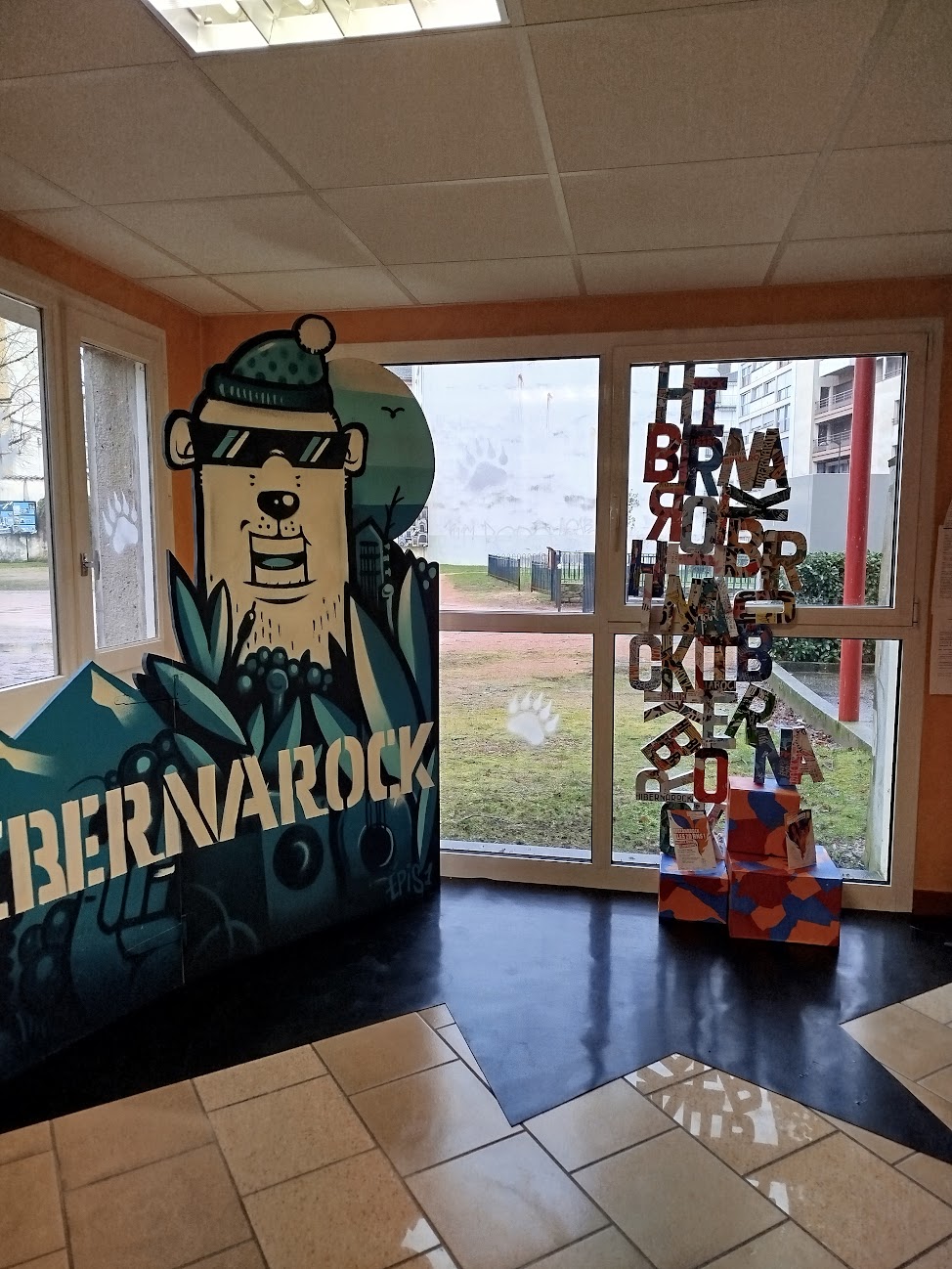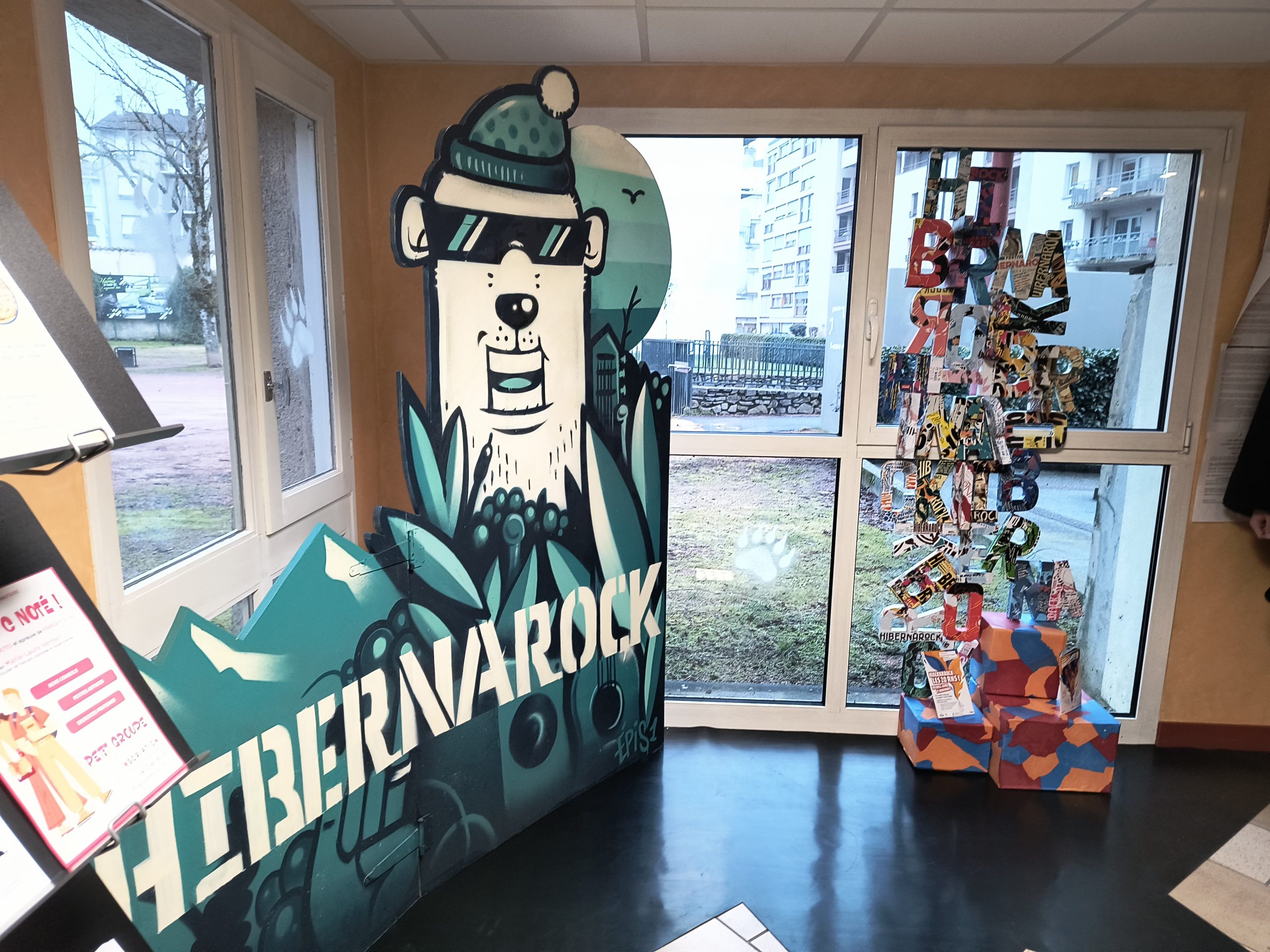 - un totem typographique Hibernarock signalant l’entrée de l’exposition ;
