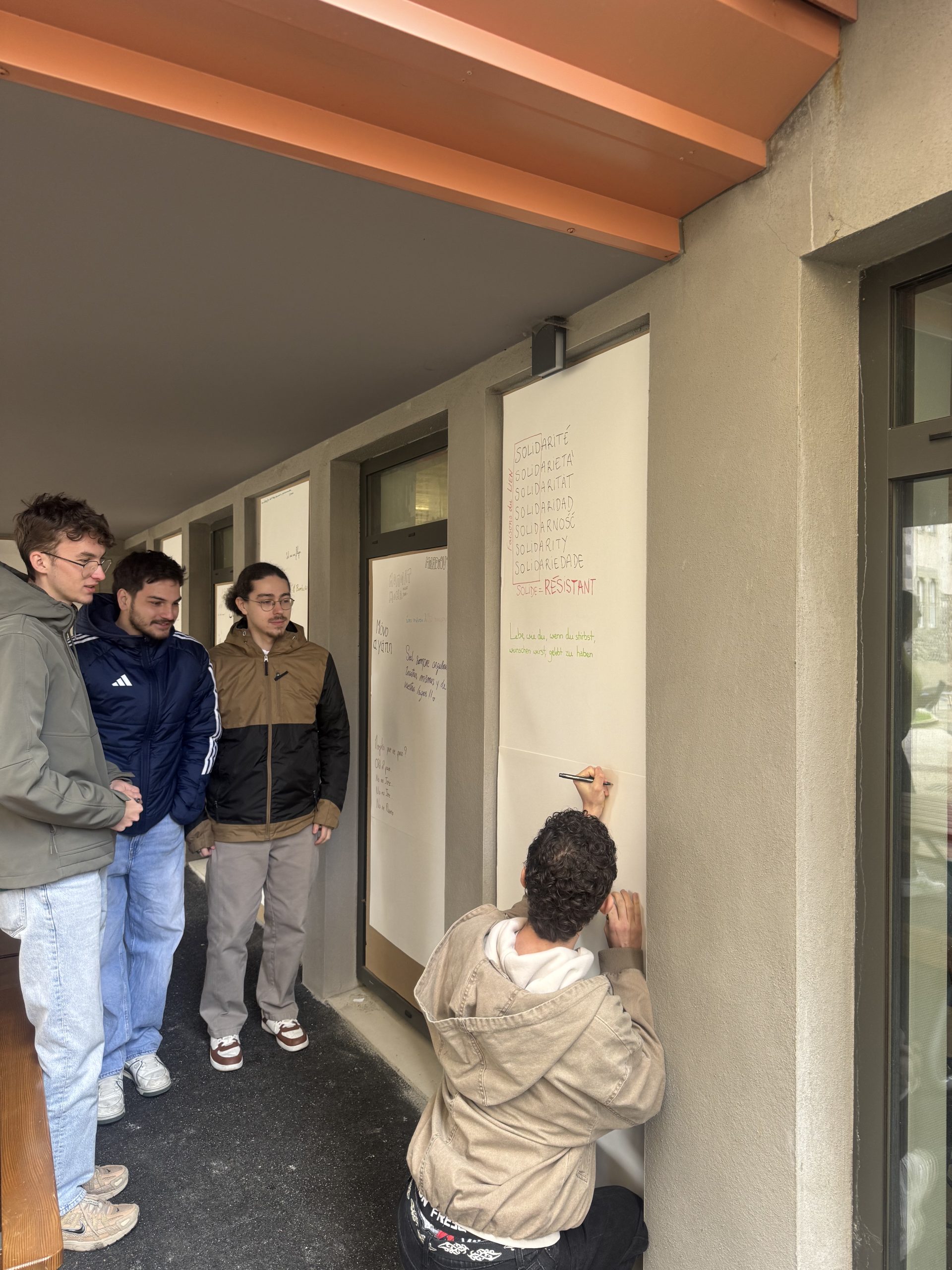 Un mur participatif a été installé au cœur du lycée avec une question simple : « Et toi, quelle langue te construit ? ». Toutes les personnes de l’établissement ont pu y écrire un mot important pour eux, dans la langue de leur choix, l’expliquer, voire l’illustrer. Un espace d’expression libre, révélateur de la diversité linguistique et culturelle de l’établissement.