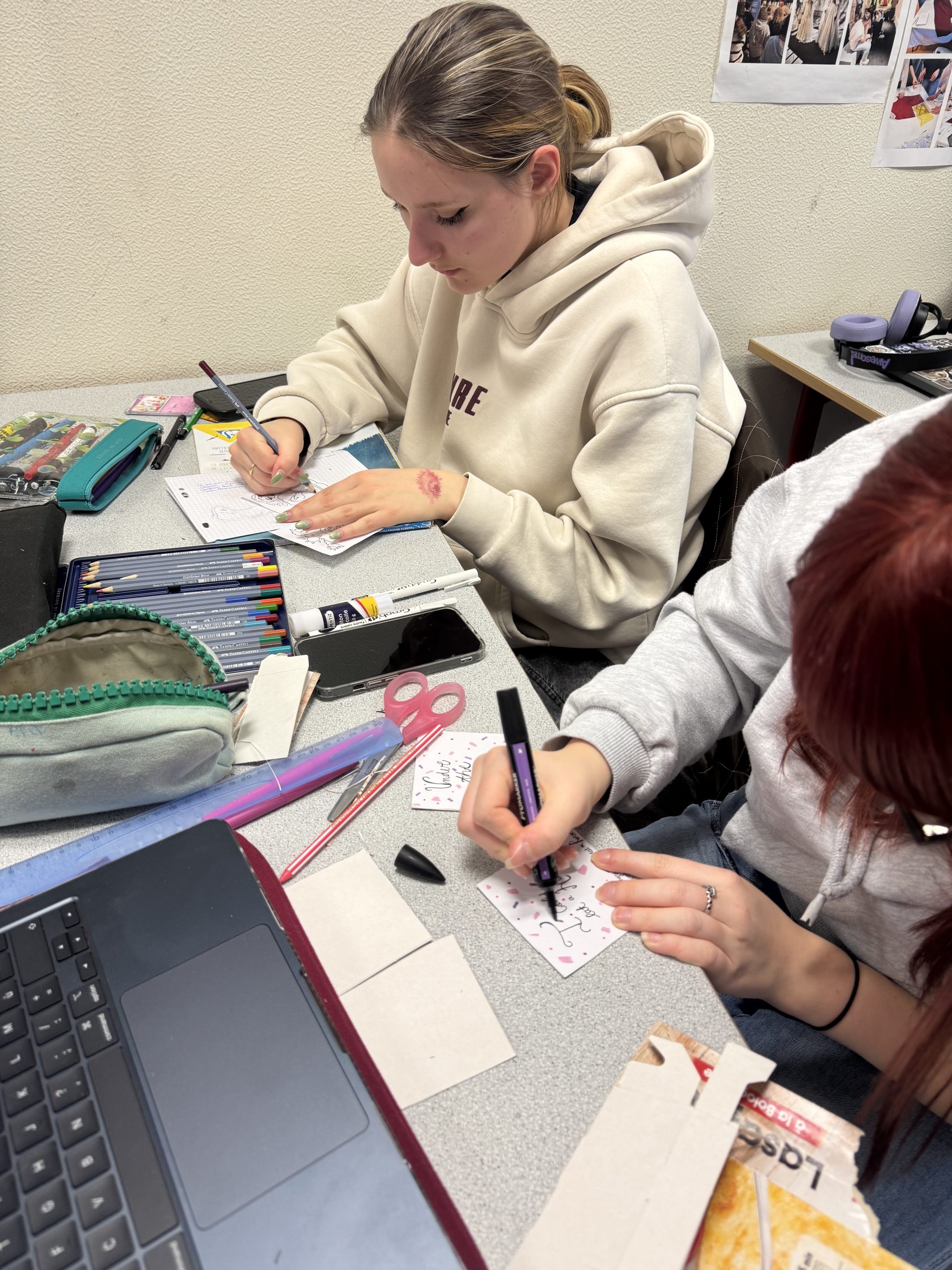 Les élèves de CAP ont contribué à cette semaine en réalisant des badges et magnets multilingues, associant mots, émotions et identité personnelle.