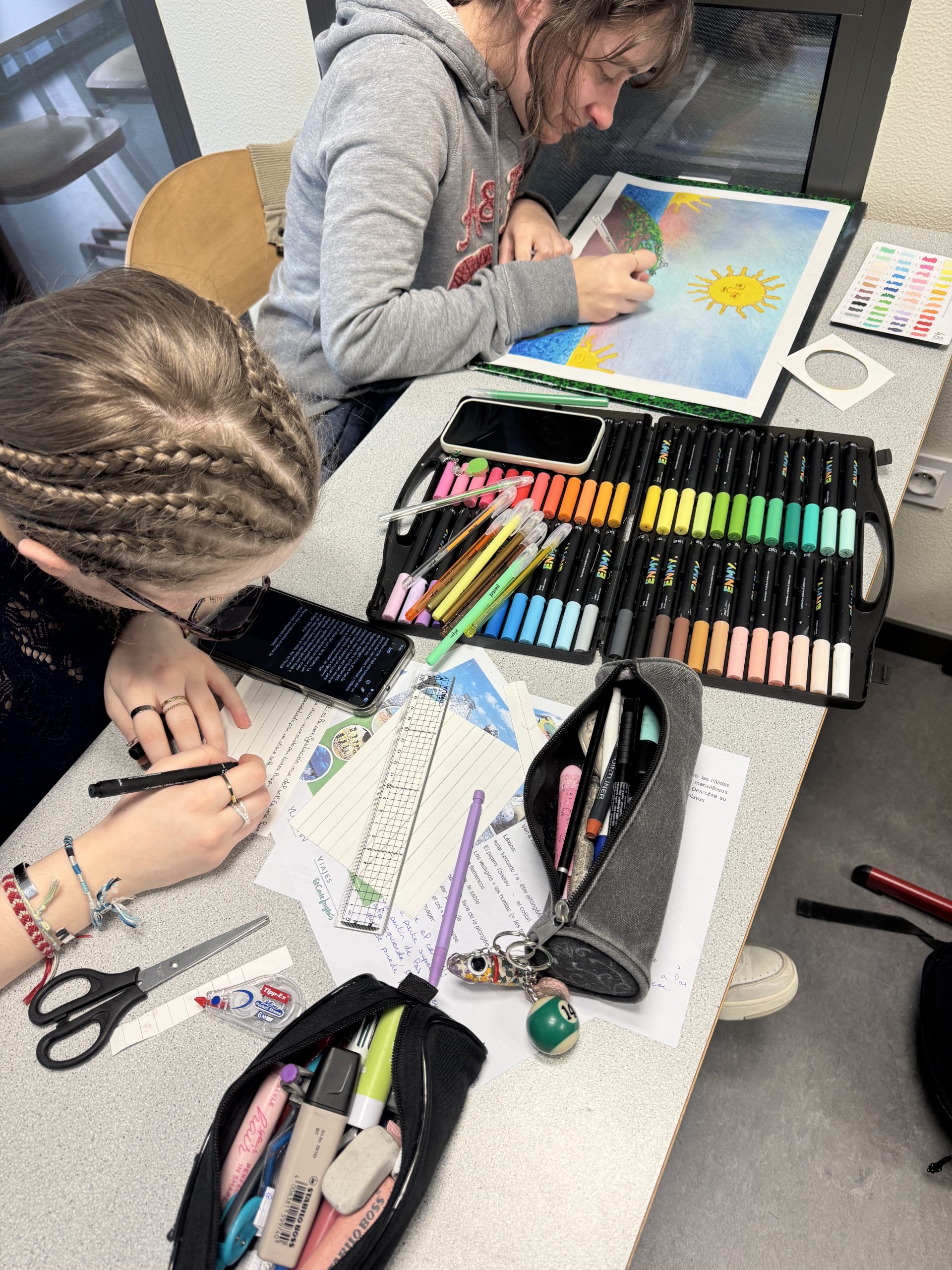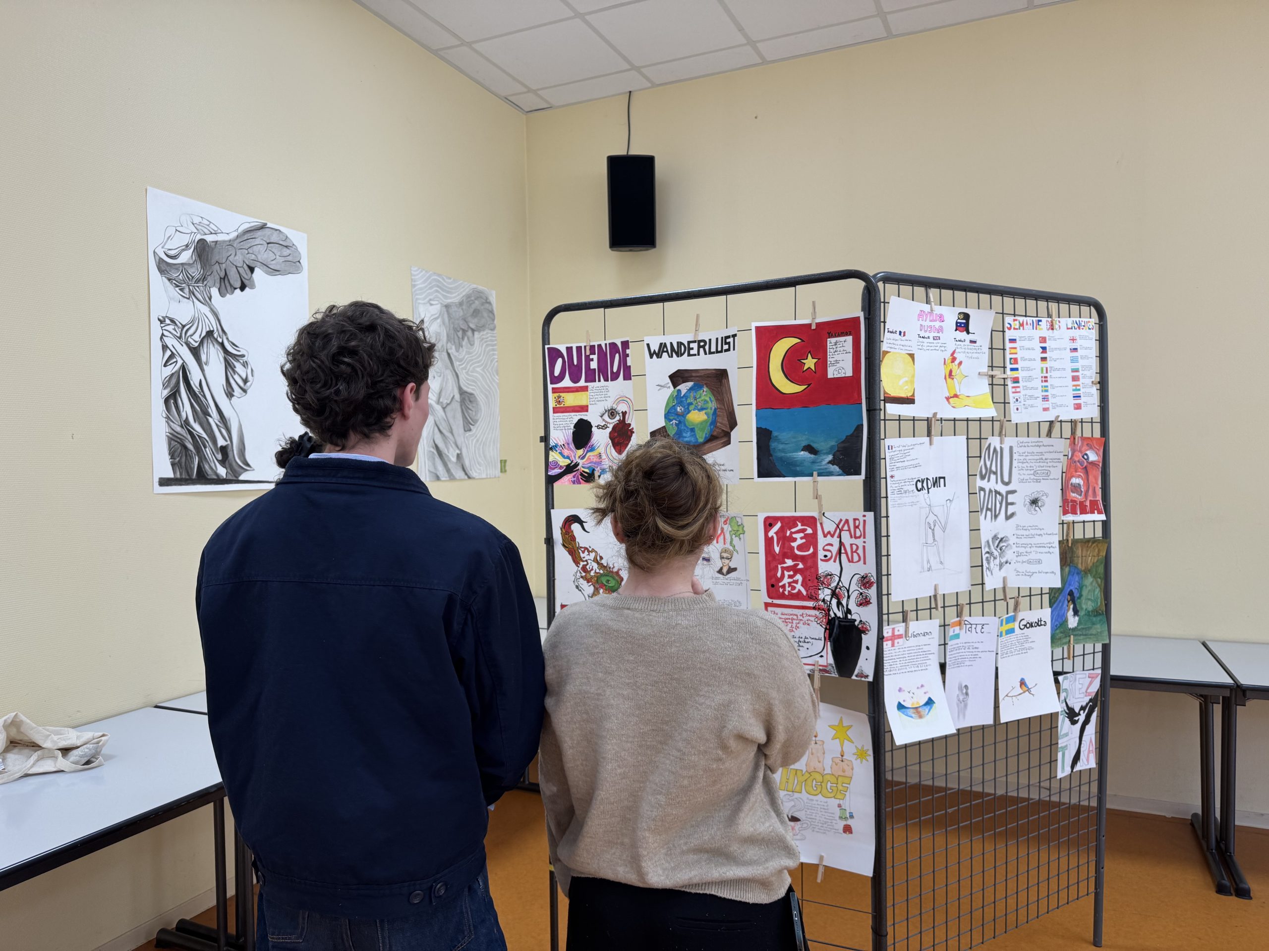 Tout au long de la semaine, élèves et étudiants ont exploré les langues vivantes à travers des projets variés, mêlant réflexion linguistique, expression artistique et ouverture culturelle. Entre travail sur les mots intraduisibles en anglais, création d’acrostiches ou encore musique en espagnol, chacun a pu expérimenter différentes manières de donner vie aux langues.