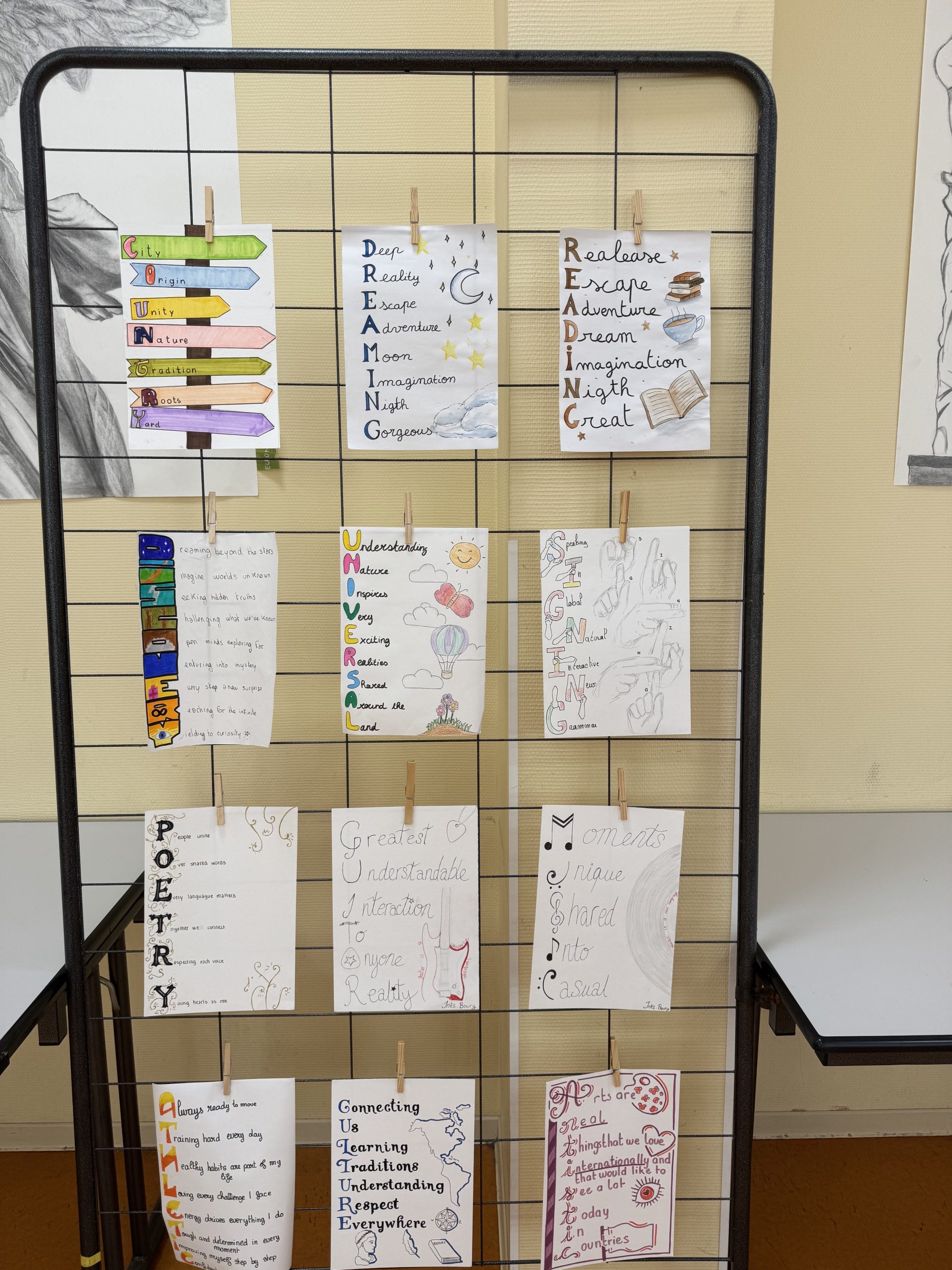 Les élèves de STD2A se sont illustrés par des productions mêlant langue et création visuelle : les Premières ont conçu un clip vidéo autour de la chanson de Iaku en espagnol, tandis que les Terminales ont imaginé des acrostiches en anglais, alliant sens et esthétique.